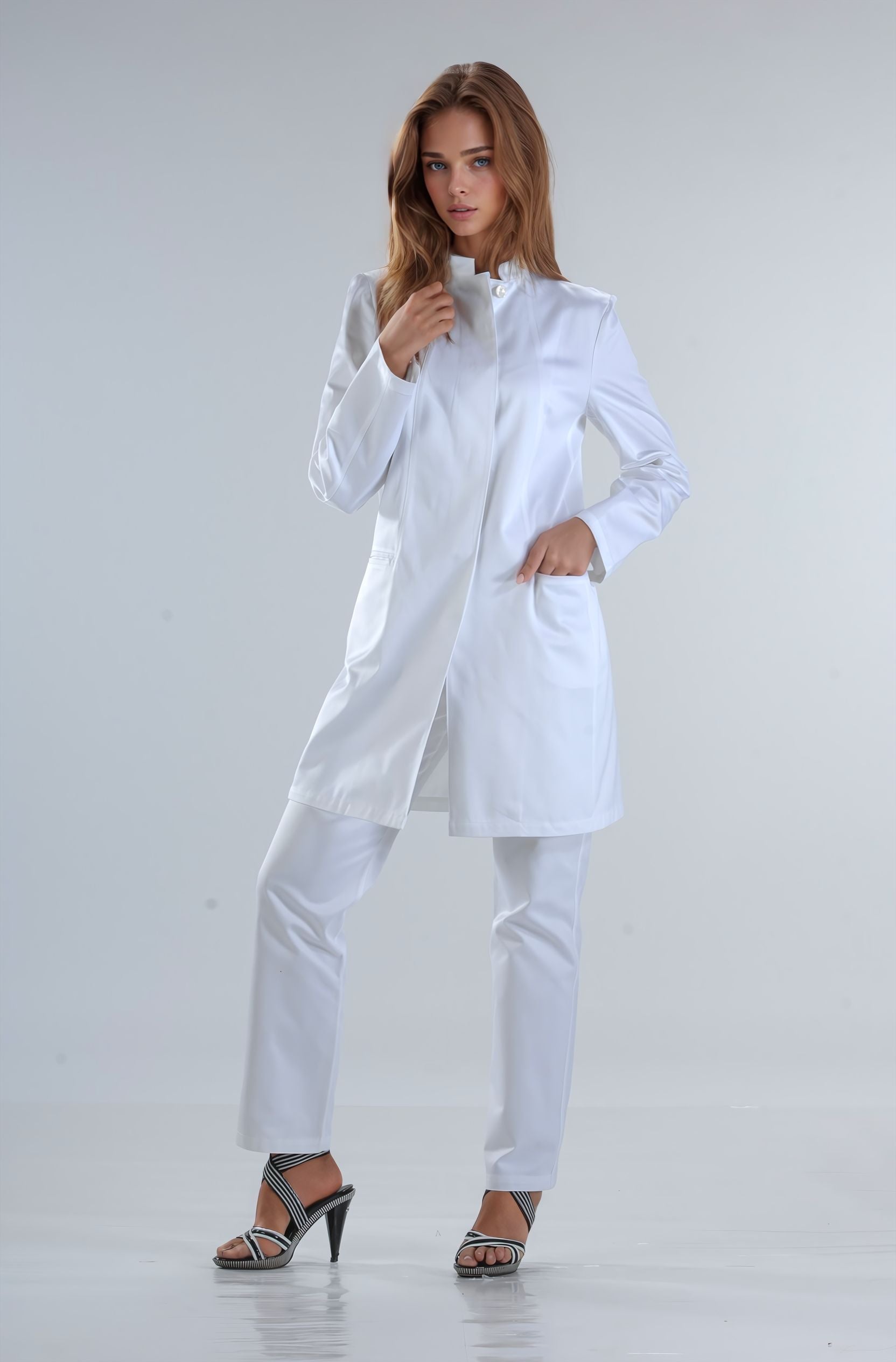 This medical garment is filled with details that highlight its wearer, from the exquisite shape of the collar to the two highlighted buttons and pockets that are perfectly hidden in the dress.