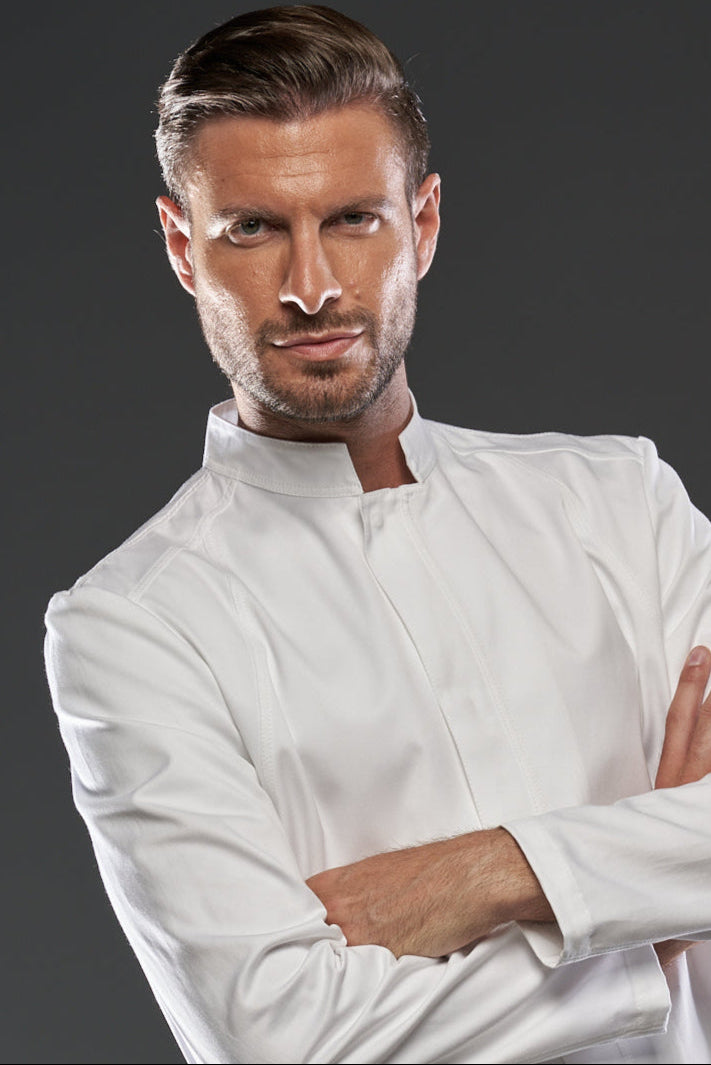 The Gries men's lab coat from Pastelli features a modern 7/8 length with a smooth stand-up collar and pockets that are seamlessly integrated into the seams. It has a press stud fastening for a streamlined look. Made from premium 100% cotton Supima gabardine, the material undergoes a special treatment that makes it exceptionally easy to iron.